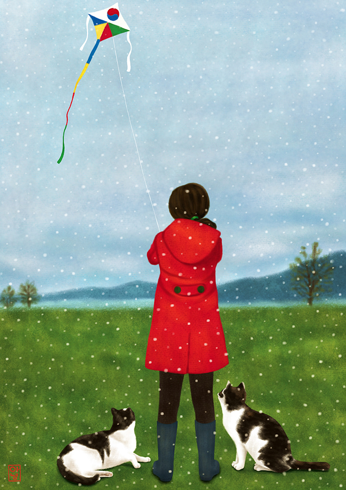 A flying girl and cat Digital painting. Digital art. Medium : Adobe Photoshop