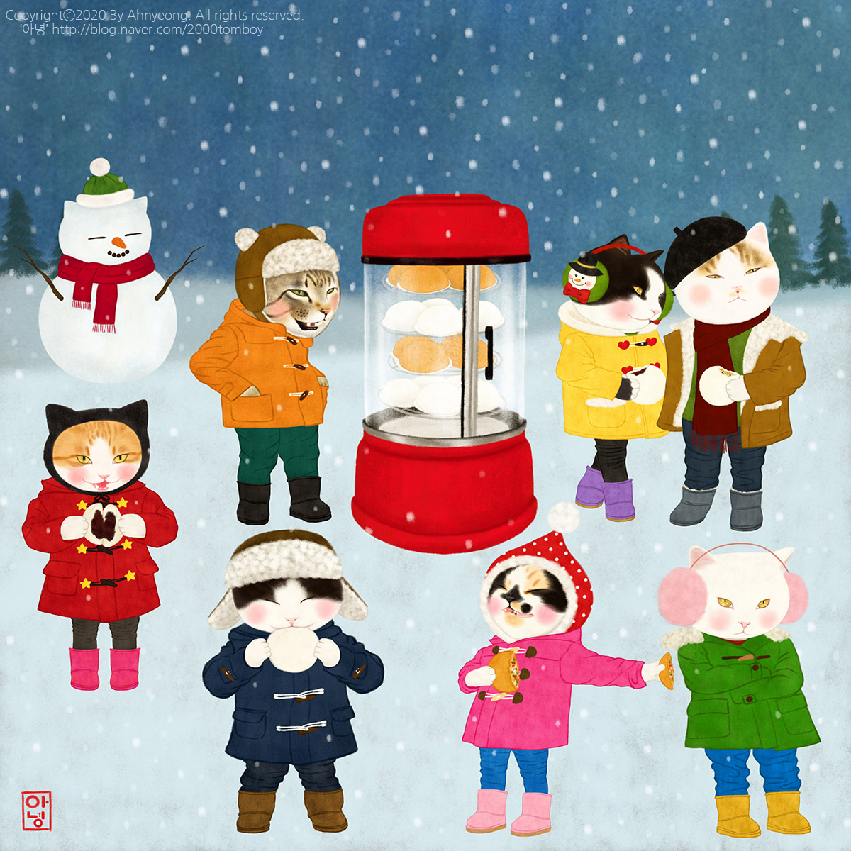 The model of this illustration is an existing stray cat living in my neighborhood.