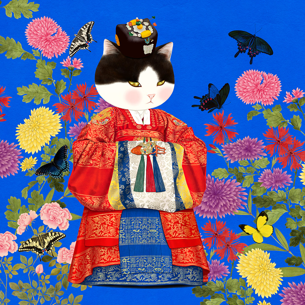 This is Hanbok, a traditional Korean costume called 'Hong Wonsam'.