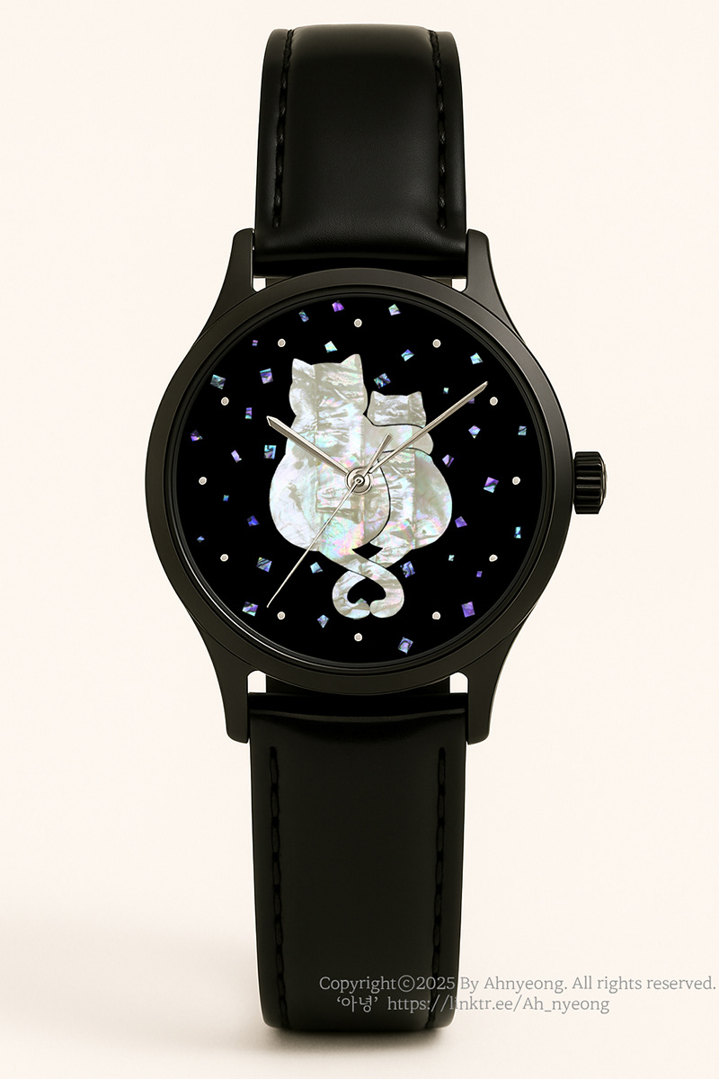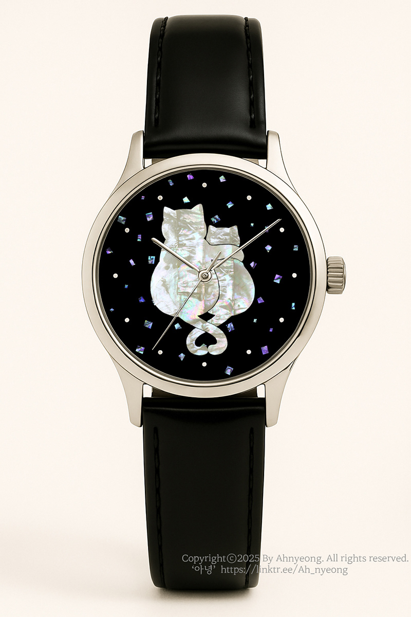 "Mother-of-Pearl Cat Illustration – Wristwatch Mockup"