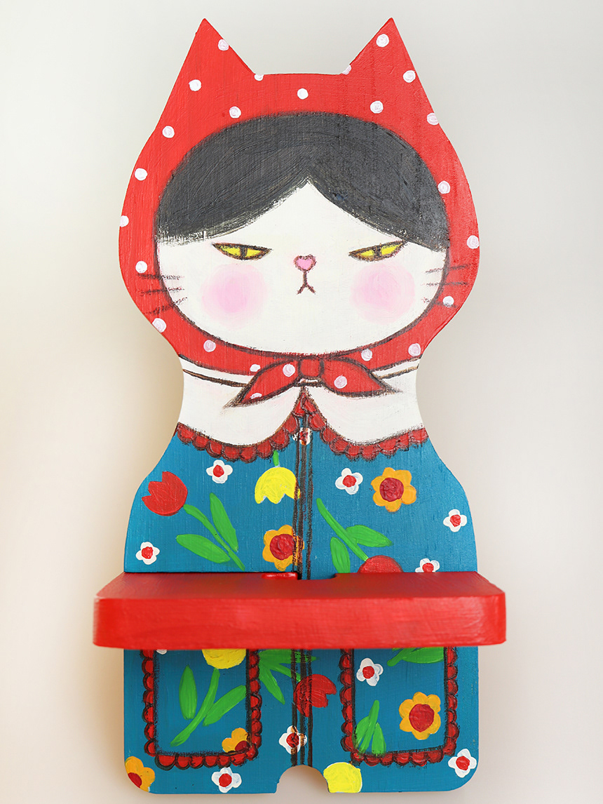 The cat in this painting wore a traditional Korean costume, Hanbok.