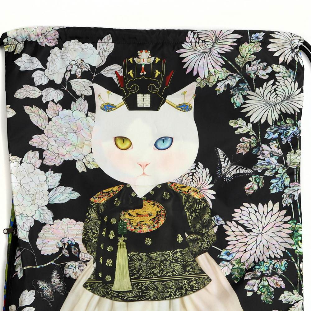 The cat in this painting wore a traditional Korean costume, Hanbok.