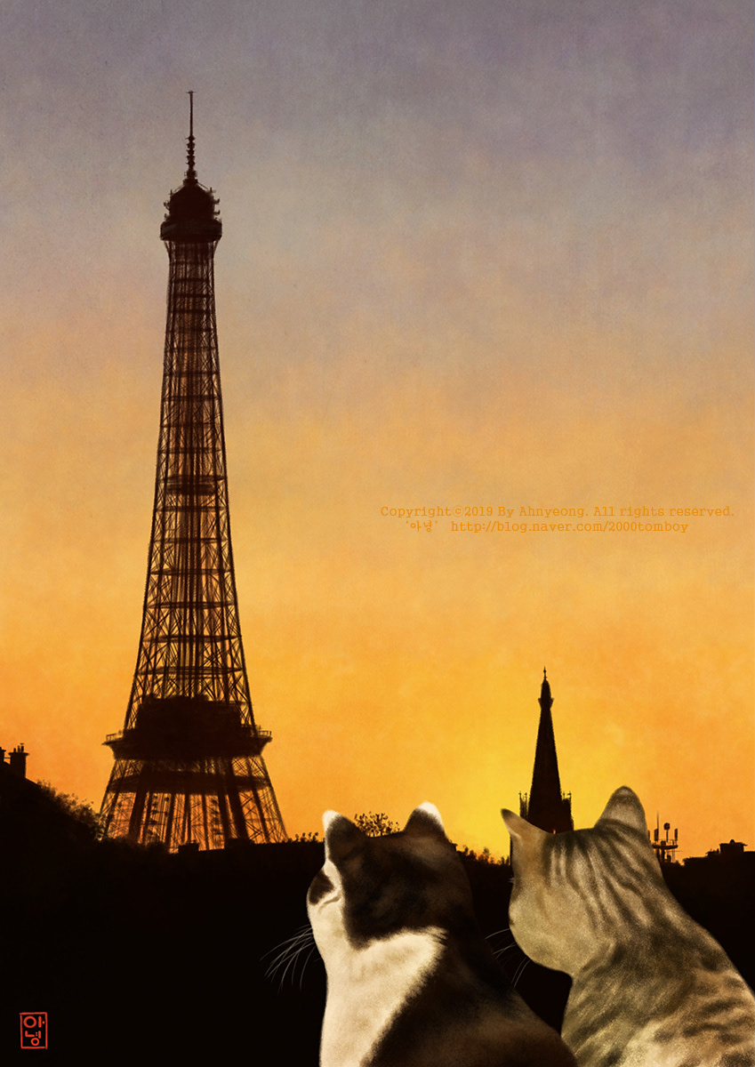 The model of this illustration is an existing stray cat living in my neighborhood.
