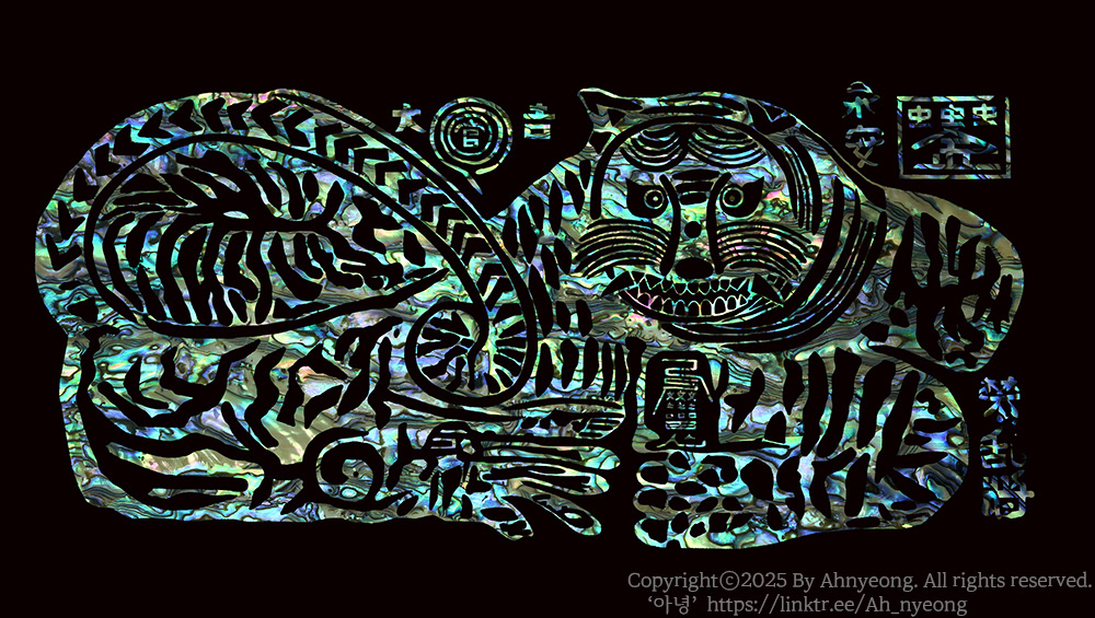 Tiger Illustration Inspired by Traditional Mother-of-Pearl Inlay (Najeon Chilgi)