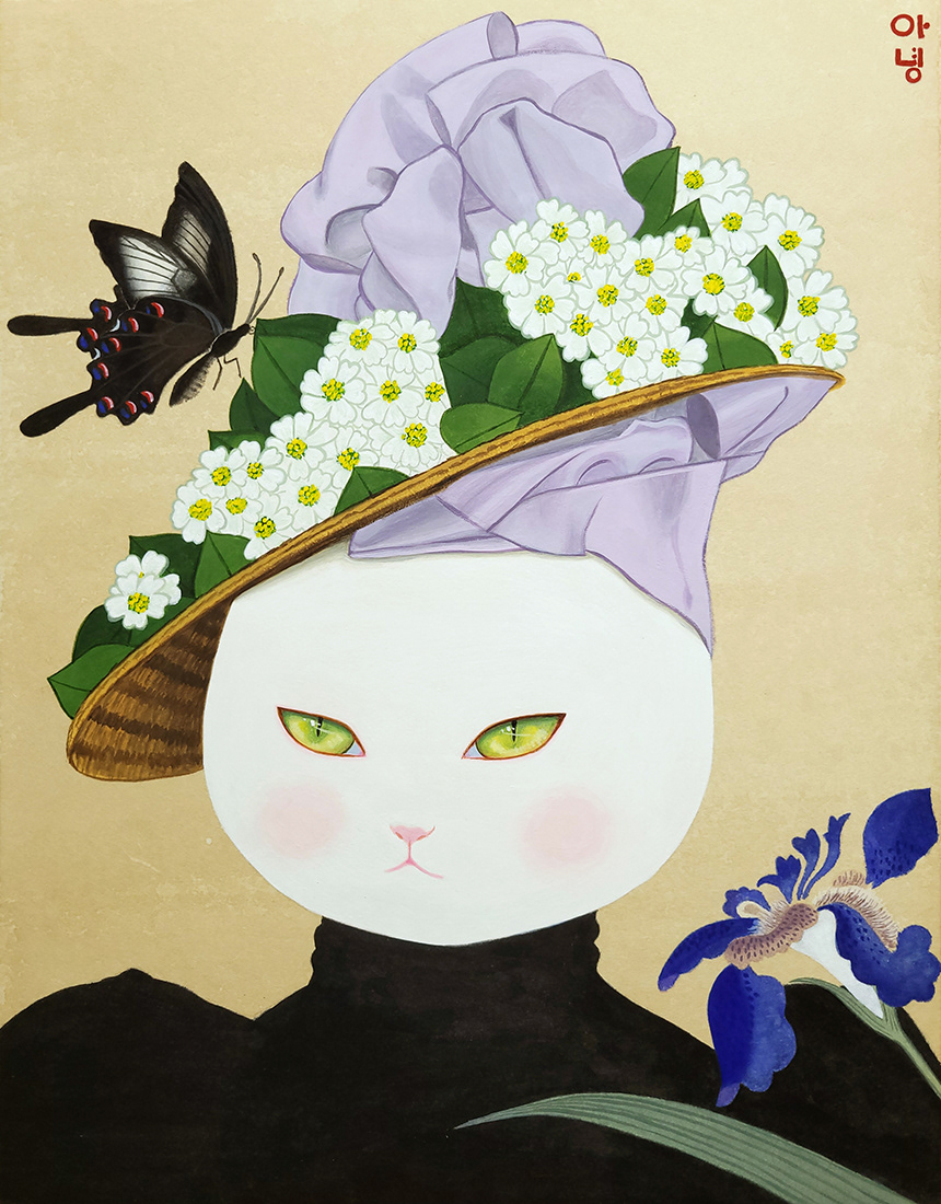 Mixed material on Korea paper. (Korean paint, bunchae, acrylic)